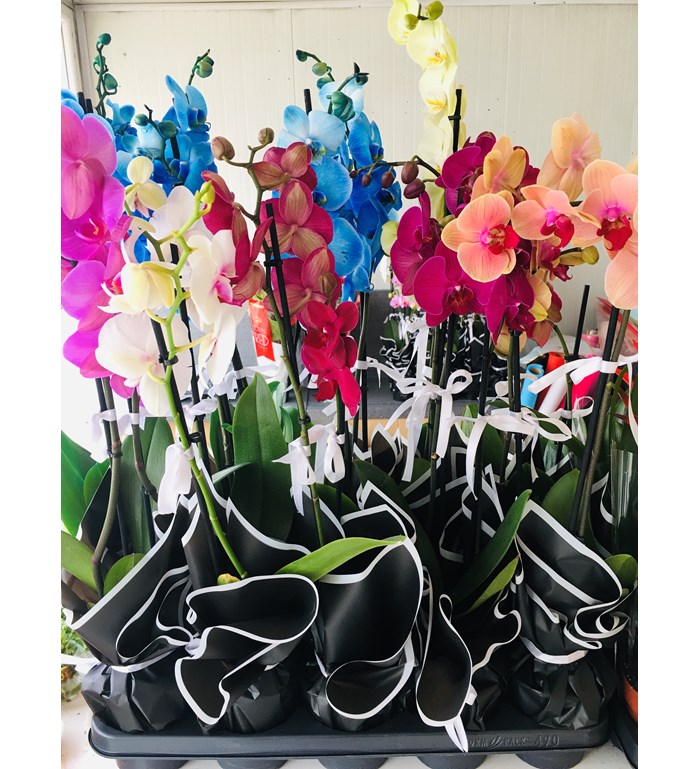 Renkli orkidelerden 1 adet çift dal ithal orkide